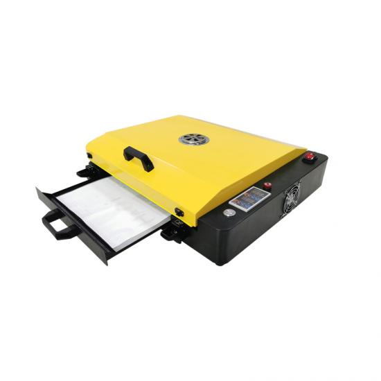 Forno A3 dtf projetado para impressão A3 dtf. Temporização automática, campainha de chegada e alarme LED. Tamanho máximo: 430*318 mm.